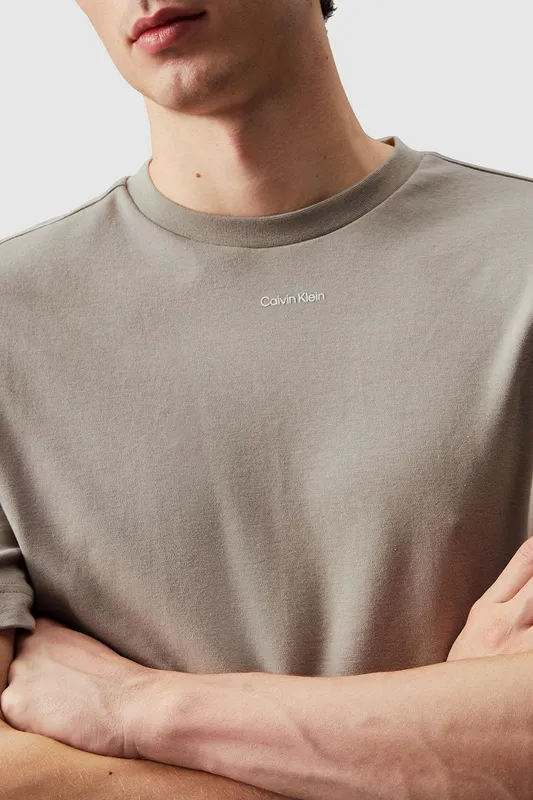 חולצת טי מבית Calvin Klein עשויה כותנה בגידול אקולוגי בצבע אבן, עם צווארון מעוגל בשילוב הדפס לוגו המותג בחלק העליון ובגזרה נינוחה.