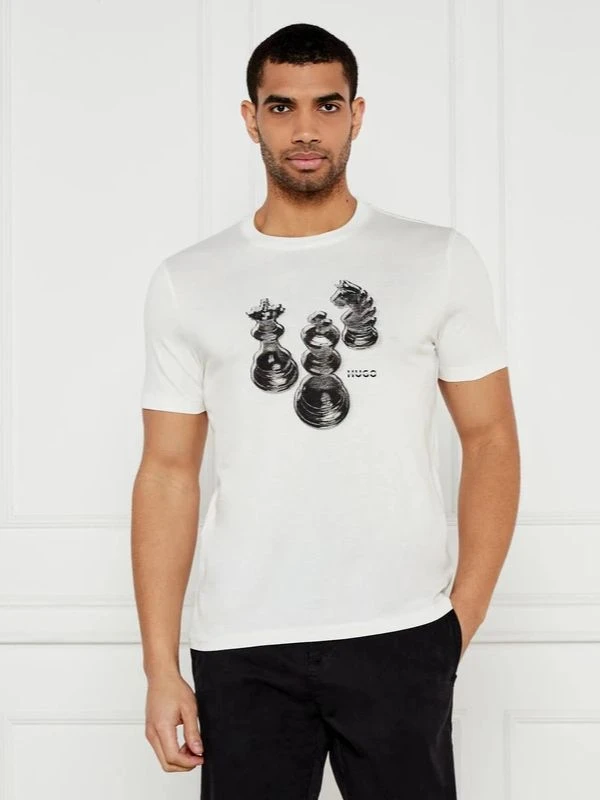 חולצת הטי של HUGO עשויה כותנה נושמת מוסיפה מימד רענן למראה הקז'ואל שלך. הדפס כלי השחמט נותן לך מגע יצירתי.